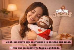 Con sus 38 cm de altura, Dulce Jesús tiene el tamaño perfecto para abrazar.